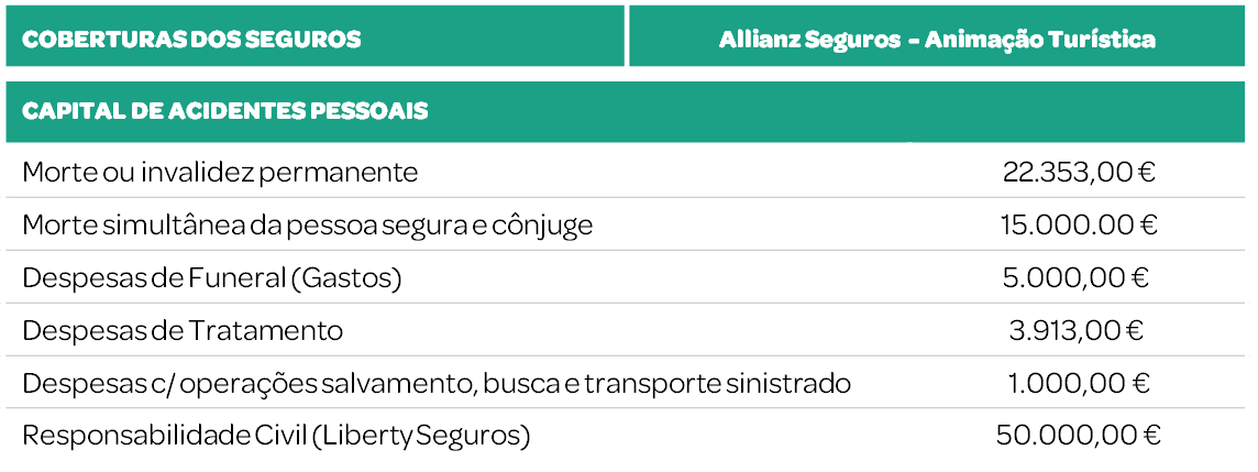 Todas as atividades dinamizadas pela Experience Sport incluem um seguro de acidentes pessoais e de responsabilidade civil, com as coberturas mínimas exigida por lei.